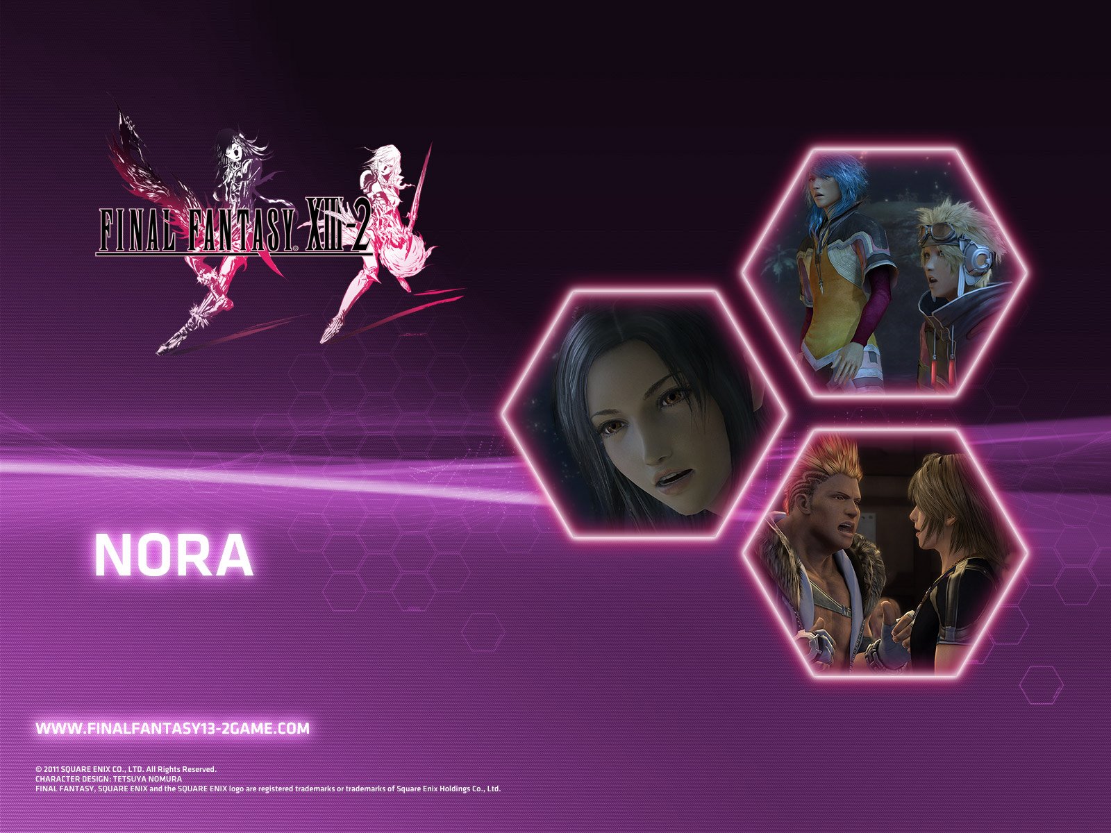 The wallpapers you can download include Final Fantasy XIII-2’s main characters Lightning, Noel and Serah. Also included is Serah’s moogle and Nora.