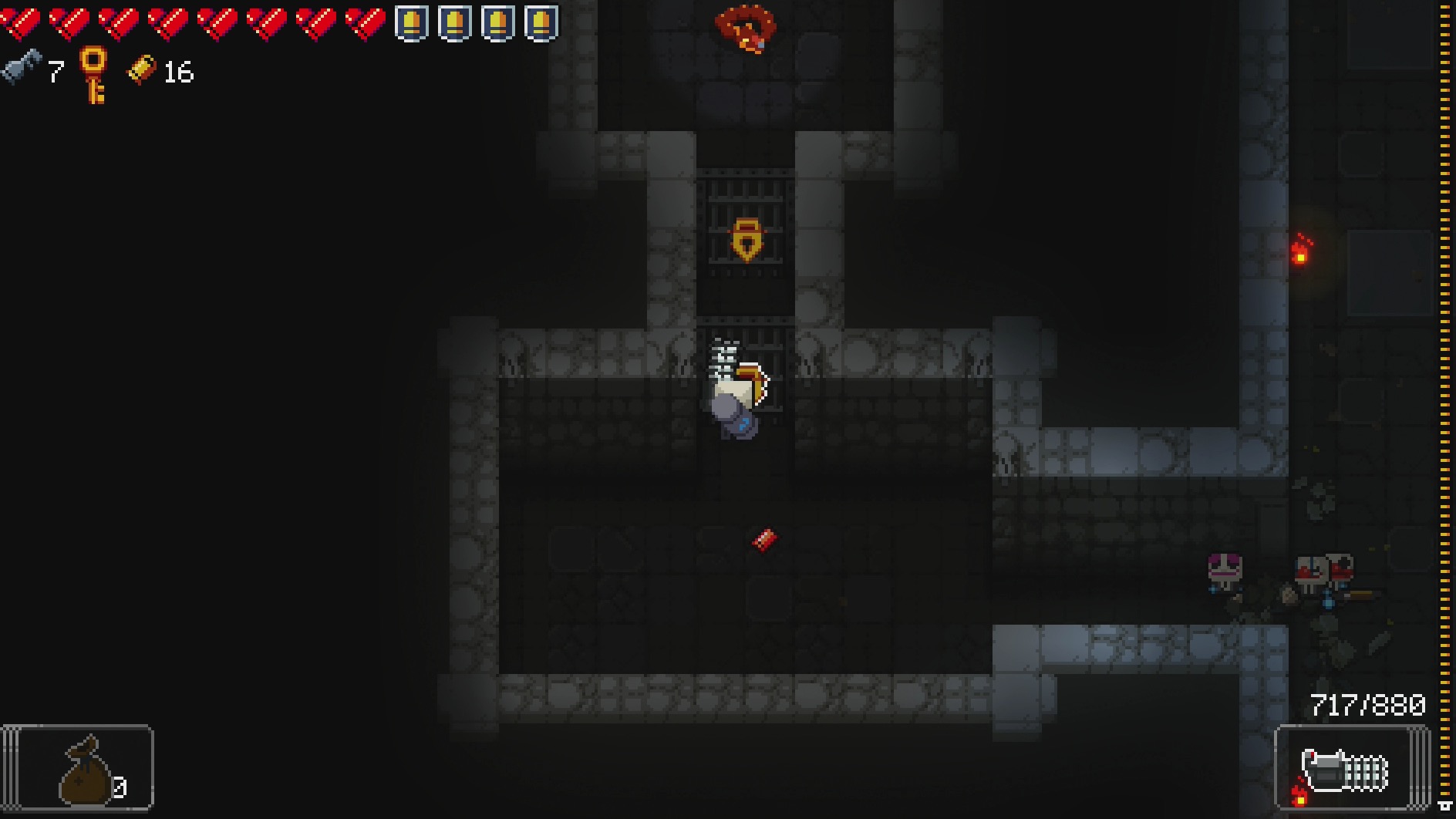 After opening the door, a task that requires one regular key, you need to get to the end of the mine cart track. Don’t worry about doing anything, since it’s a straight shot, besides using a blank at the end of the road. This should reveal a hidden path on the north side of the wall, followed by another dead end. Use yet another blank to reveal that path and you should find a room with a weird lock. This requires the aforementioned gnawed key to open, which will lead to the Rat’s lair.
