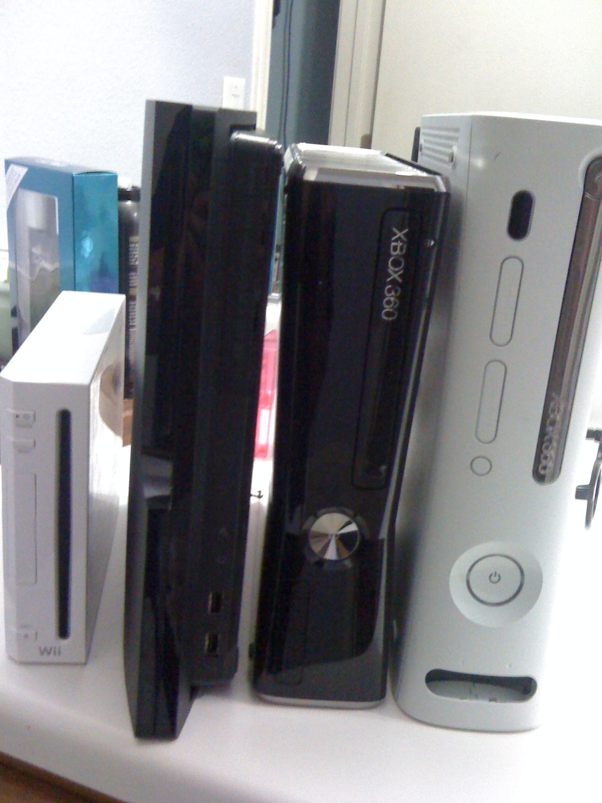 The pictures below offer a comparison between the PS3 Slim, Xbox 360 Slim, a Phat Xbox 360, and of course the little Wii. We don’t want to deliver a verdict as we want you, the consumers, to decide which console is the slimmest.