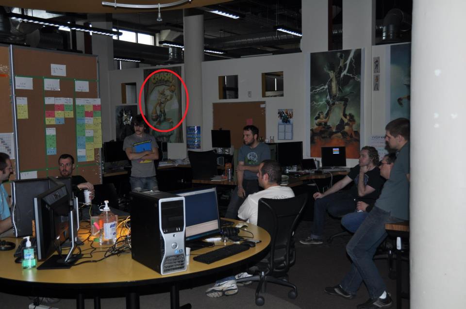 A picture on Vicarious Vision’s Facebook page shows the developers in some sort of a meeting. A poster in the corner shows Crash Bandicoot looking really buff.
