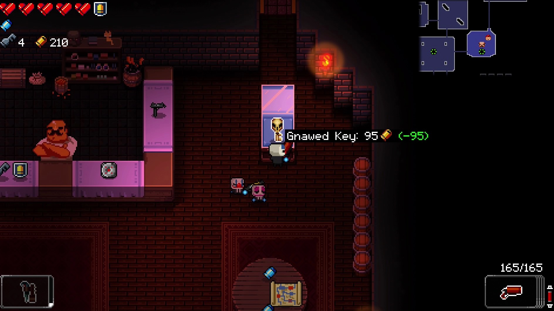 The gnawed key required 1000 to buy, though it’s a cumulative amount. So, one run you can contribute 50, another 300 and so forth. The best way to get it is to unlock the vampire on the second floor and after finishing everything besides the boss, unless you’re confident in your skills, and then trade all your health for cash. This will give you like 24 per half heart, making it an easy 100 or so towards the key. I would then donate it, piss off the shop keeper to unlock a Payday item and then die, repeating it until the key is cheap enough to buy. The last trick is to lower the price to something you can pay regardless of what happens and then wait for a decked out run. If you do purchase it and fail, it will be sold for the more reasonable price of 120 or so. You can also steal it if that is easier.